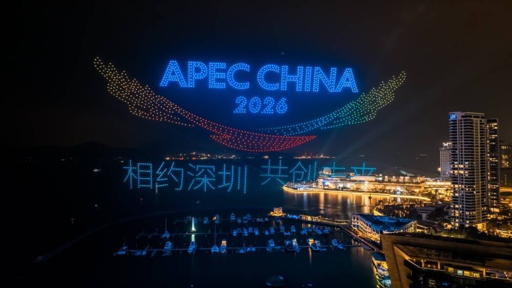 活动尾声,伴随夜幕降临,2000 架无人机在会场外腾空而起,以天为幕,组成绚丽的动态画卷。这场表演不仅通过“空中智媒”的形式展示了本次评选上榜企业的荣耀时刻,更通过低空文旅场景展演为即将到来的APEC会议预热,用科技之美点亮湾区夜空,为本次盛典画上了圆满的句号。