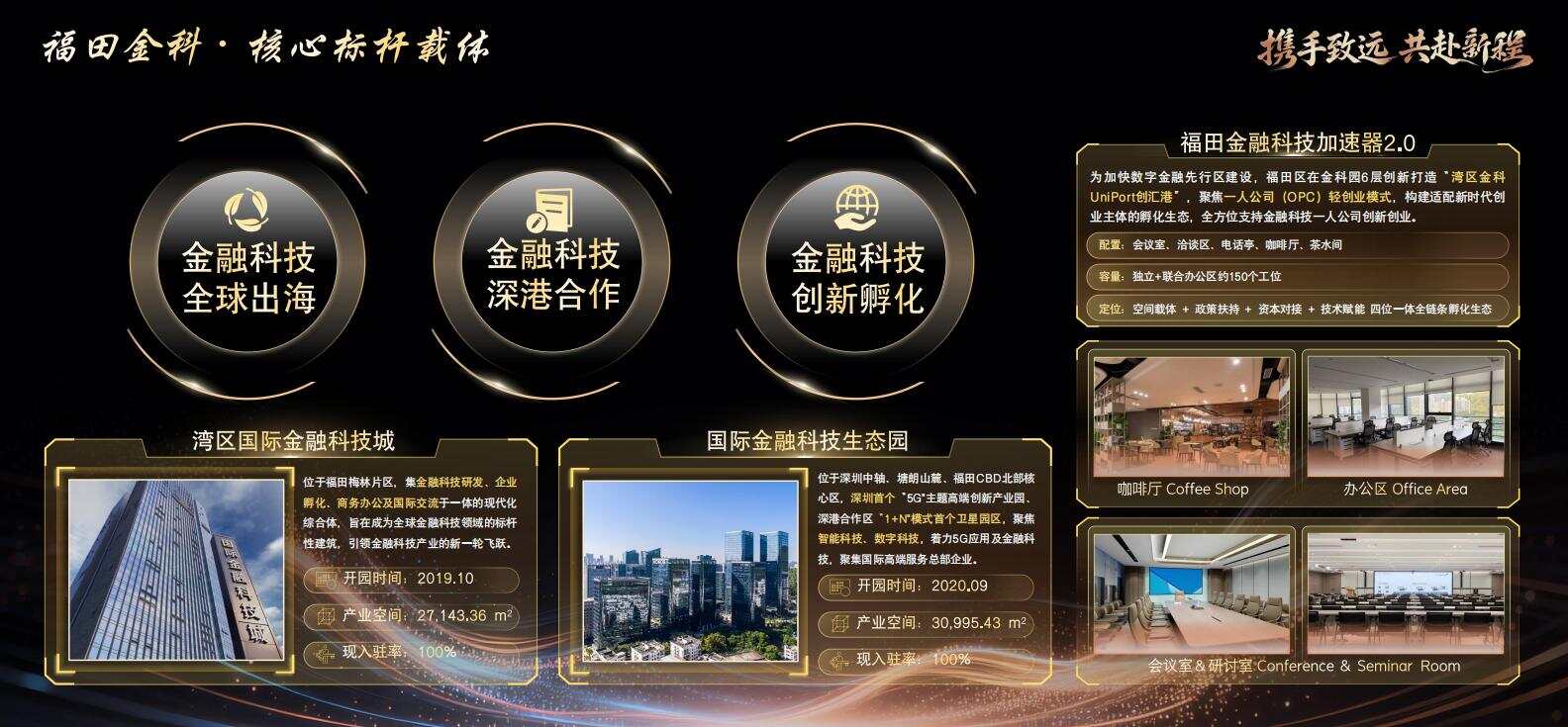 FinTech Uni-Port依托全国标杆福田金科双园打造,衔接金科3.0深港金融科技生态区,坐拥深圳近70%持牌金融机构资源,深港金融科技联合孵化器深度联动,河套数据、资金跨境独特优势加持,技术共研、场景共建、成果共用,乘AI东风,享深港无界创新红利。