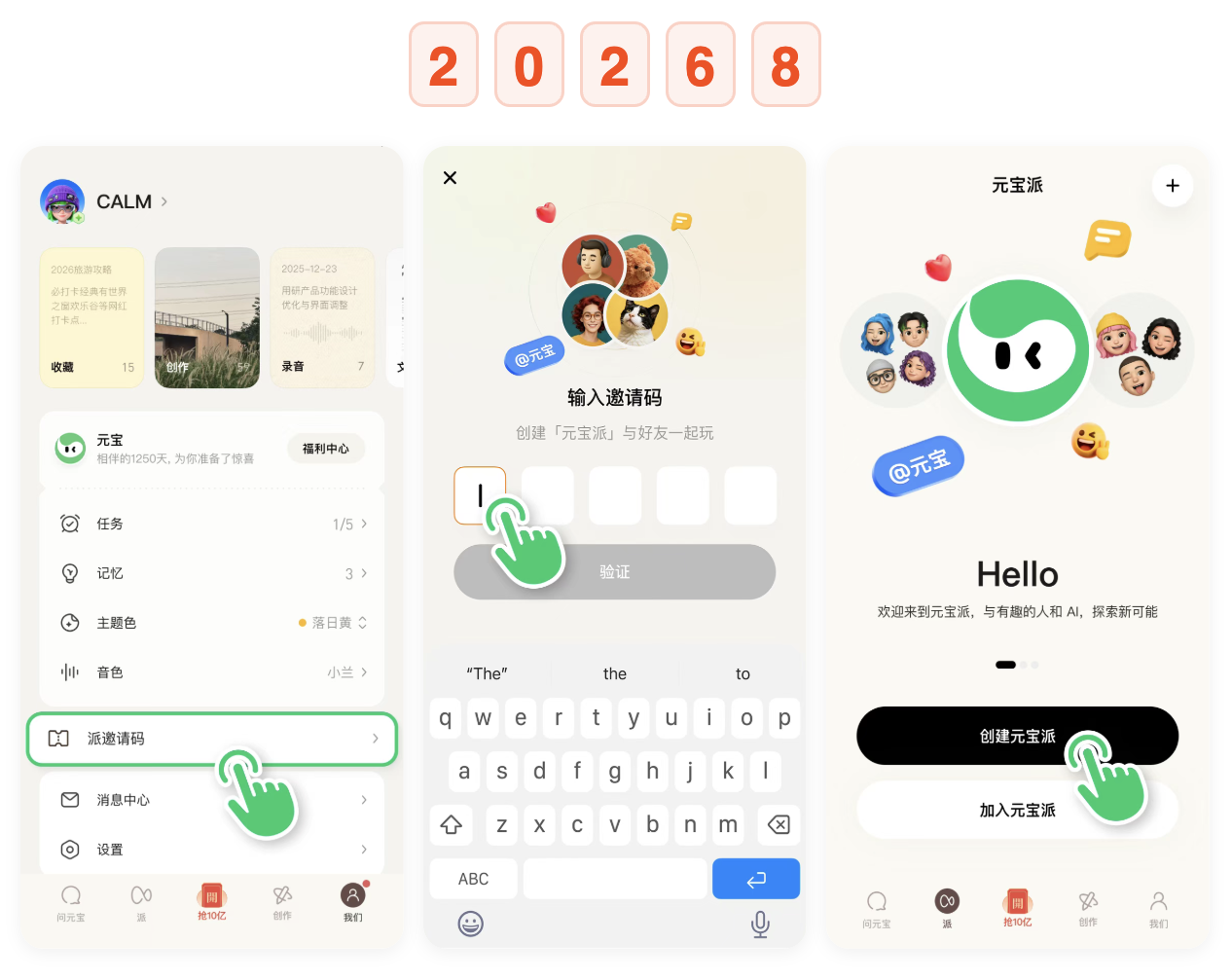 此前已激活“元宝派”入口的用户,在元宝官网下载安装即可使用。未激活“元宝派”入口的用户,点击任意元宝派邀请链接,或在元宝客户端【我们】-【派邀请码】验证邀请码,即可激活元宝派入口。