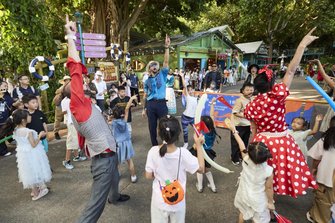 假日期间,来自全球各地的街头艺术家齐聚园区,曾亮相爱丁堡艺穗节、诺丁山狂欢节等国际节日的表演者,带来了高跷、西班牙马戏、小丑杂耍和高空特技等多元街头秀,让游客不出国门,便能一站式欣赏世界级的艺术演绎。