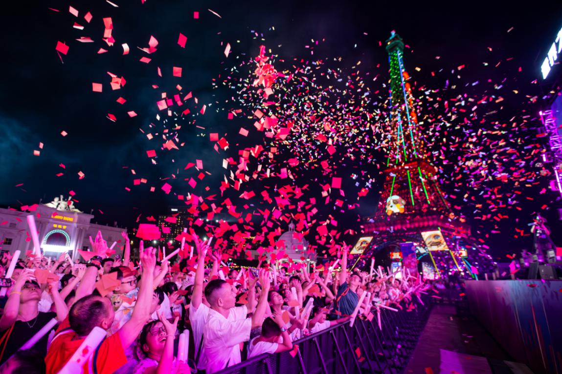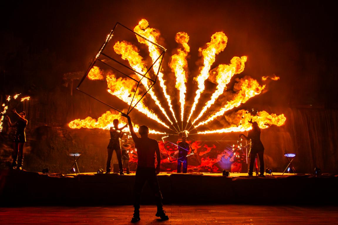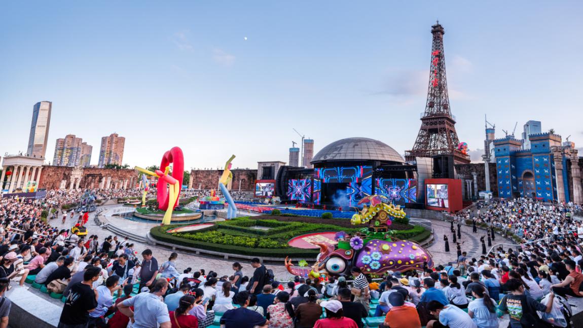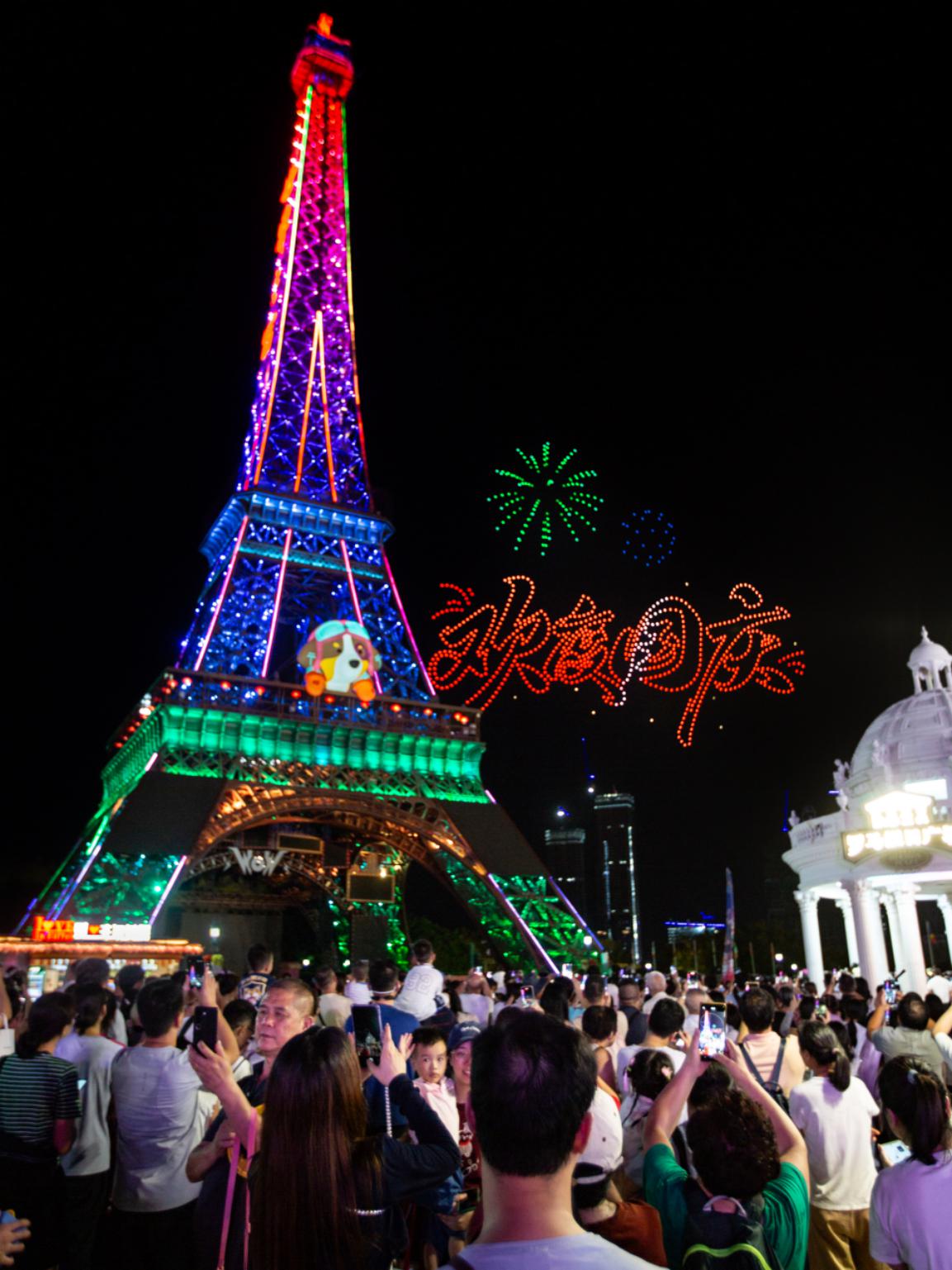 随着夜幕降临,欢乐持续升温。“全民街头卡拉OK”引发全场共鸣,场面温馨;“Darling迪斯科舞会”则在专业DJ的带动下,以经典旋律点燃夜晚激情。还有全新火秀《狂暴之火》以燃烧的火焰引爆全场气氛;《非遗双绝·天地焰》火壶打铁花表演以炽热的铁水点亮夜空。而作为国庆中秋双节限定节目,连续八晚亮相的千架无人机天幕大秀,通过科技与艺术的完美融合,在夜空中绘出节日祝福与动人图景,为游客的黄金周之旅留下了璀璨而难忘的收官回忆。