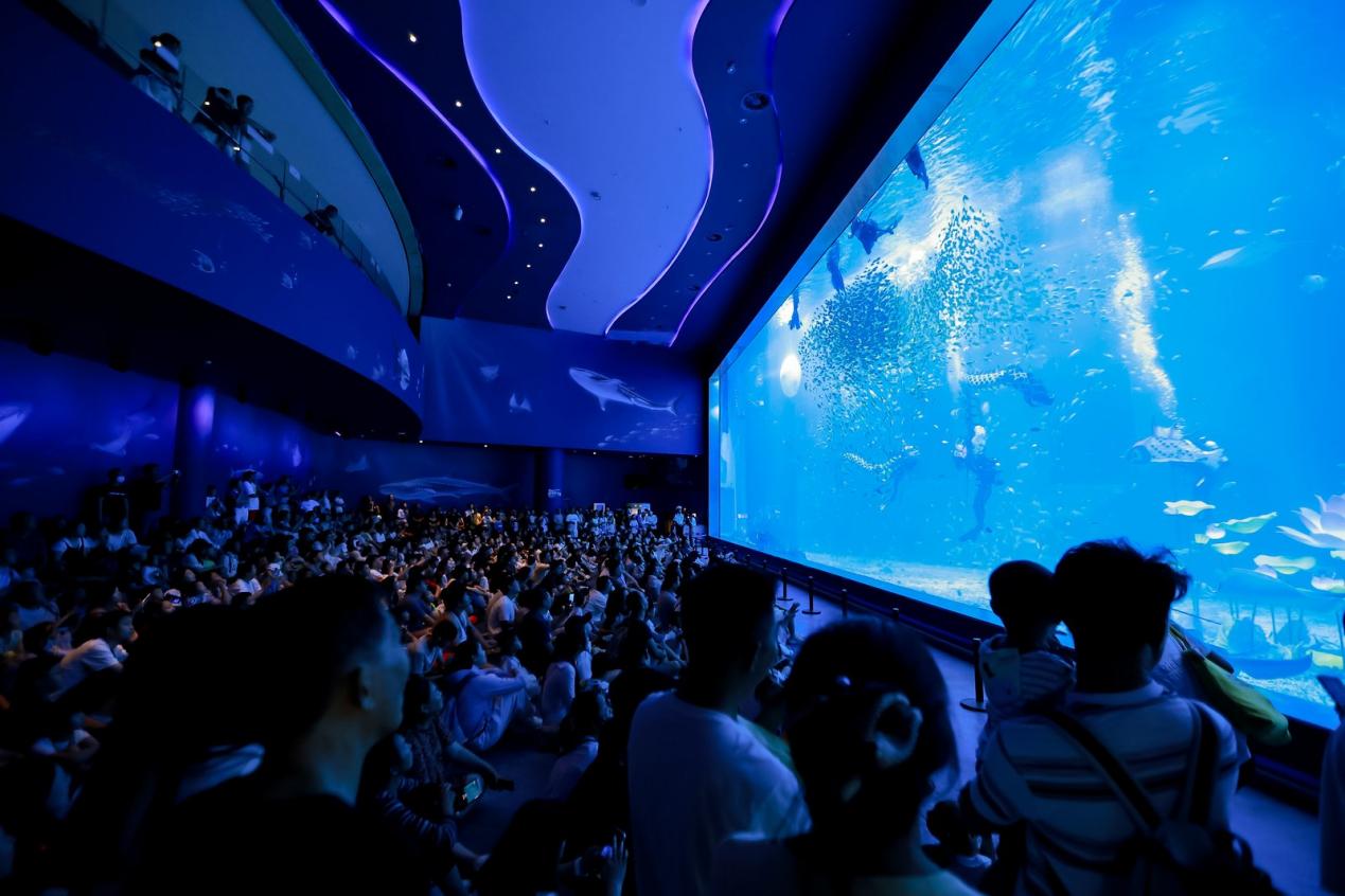 值得一提的是,国庆期间海洋世界举办“巨幅水下国旗巡游”特别活动,潜水员在大洋池中缓缓展开巨幅五星红旗,红蓝交织的画面震撼人心,成为网络刷屏的假期名场面,以独特方式向祖国献礼。