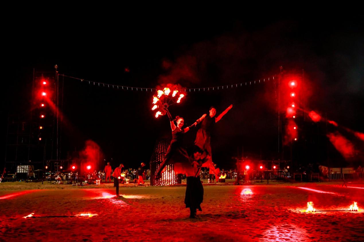 与此同时,小梅沙海滨乐园以“白天玩水、夜晚观火”的双时段体验带动热度高涨。白天,游客畅享戏水、休闲与海景度假;夜晚,非遗火舞燃爆沙滩,火光与海浪交织出“一半海水一半火焰”的奇观。该演出以震撼的视觉冲击与创新演绎多次登上央视新闻,成为全国游客关注的焦点,也让“小梅沙”的名字再次登上热搜。相关视频在社交媒体平台的播放量节节攀升,展示了深圳滨海文旅的独特魅力。