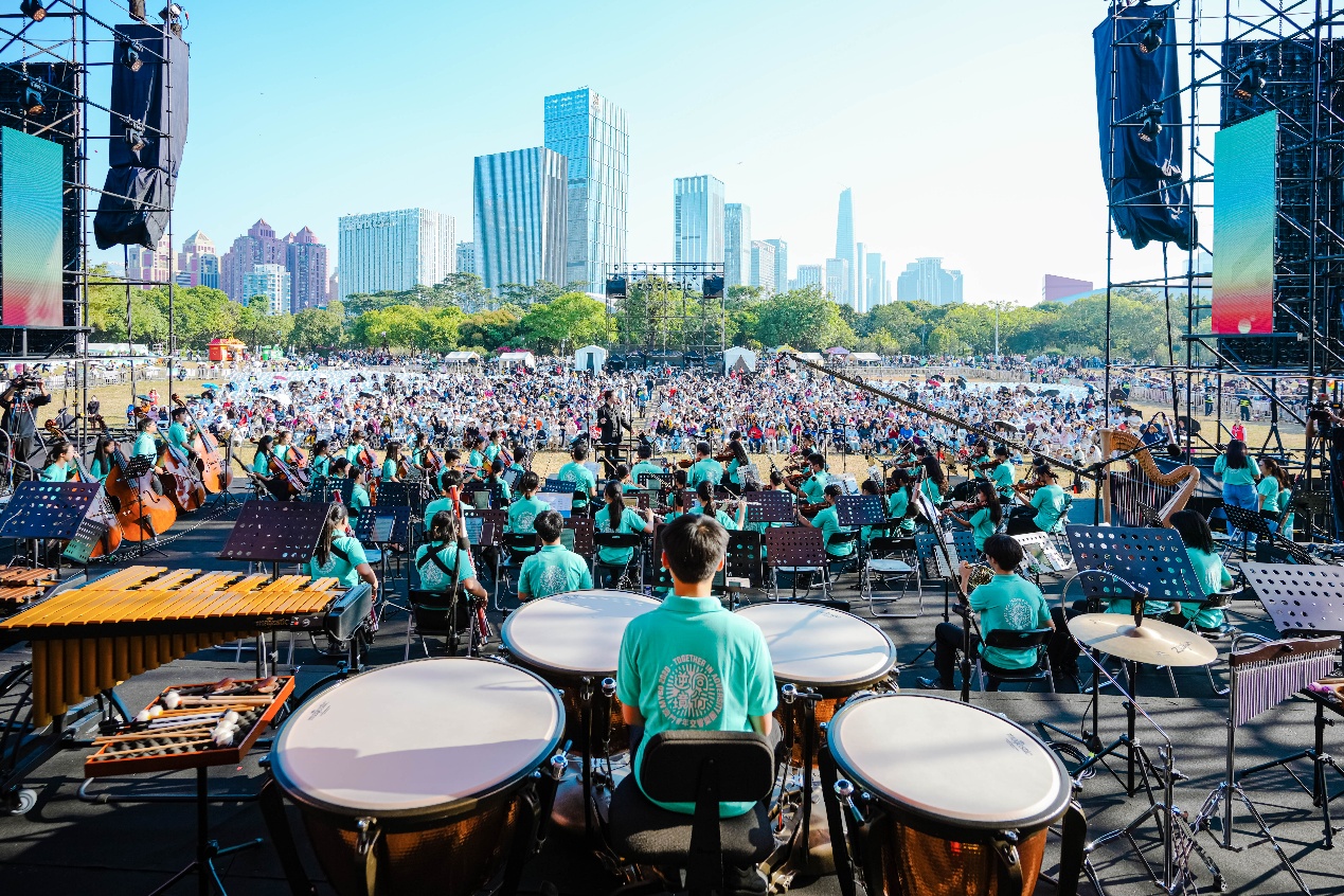 本届音乐节首次推出“深声不凡·共创演出季”,面向全市公开招募,中轴云廊、领展中心城、香蜜公园、深业上城、笔架山体育公园营地、上步绿廊、莲花山公园风筝广场音乐文创市集七大福田地标设置分舞台,30余家社会团体、学校、专业乐团参与共创演出,涵盖古典、爵士、民乐、合唱等多种形式,于音乐节前后两周内呈现30场市民共创演出,吸引人流超30万人次,并开放10场线上直播,总参与人数超过110万。真正实现“市民演、市民看、市民享”,生动诠释着这座“爱乐之城,深圳之声”的艺术活力,打造没有围墙的城市艺术现场。