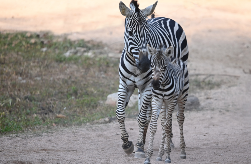 动物园饲养员介绍,新添的这匹小斑马为雄性,斑马是群居动物,新添的小斑马不仅受到母马的悉心照料,也是斑马家庭共同任务,同样得到斑马其他成员的细心照顾。每匹斑马的条纹都是独一无二的,小斑马身上的条纹和间隔的形成是在母马的妊娠早期,以后在胚胎发育过程中,由于身体各部位发育的情况不同,所以小斑马出生后,各部位所形成的条纹也就不一样,有的宽,有的窄。目前小斑马身上淡淡的黑白相间色,随着小斑马的长大,斑纹也会变得与成年斑马一样漂亮而雅致。
