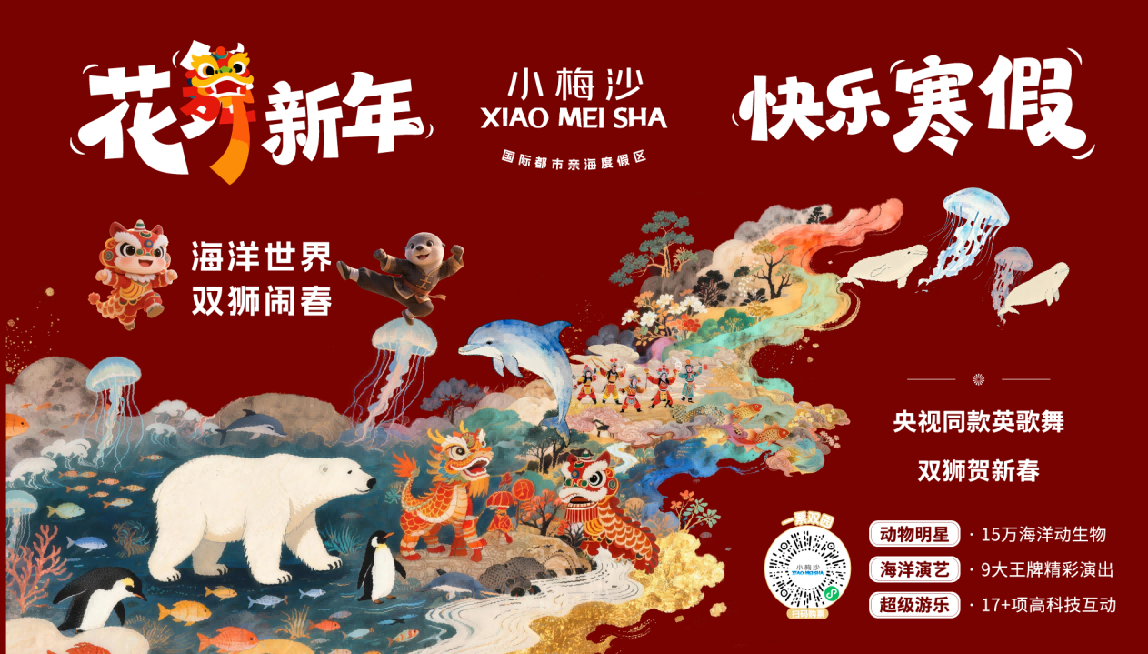 2026年春节及寒假期间,小梅沙(含小梅沙海洋世界、小梅沙海滨乐园)与深圳锦绣中华·民俗村联合推出“海韵国潮”联名通票低至258元起,购票游客可享包含小梅沙海洋世界、小梅沙海滨乐园、锦绣中华、中国民俗文化村“四园”一票通玩权益,门票多天有效,游客可灵活漫游。目前,“海韵国潮”寒假通票已在各大OTA平台全线开售。