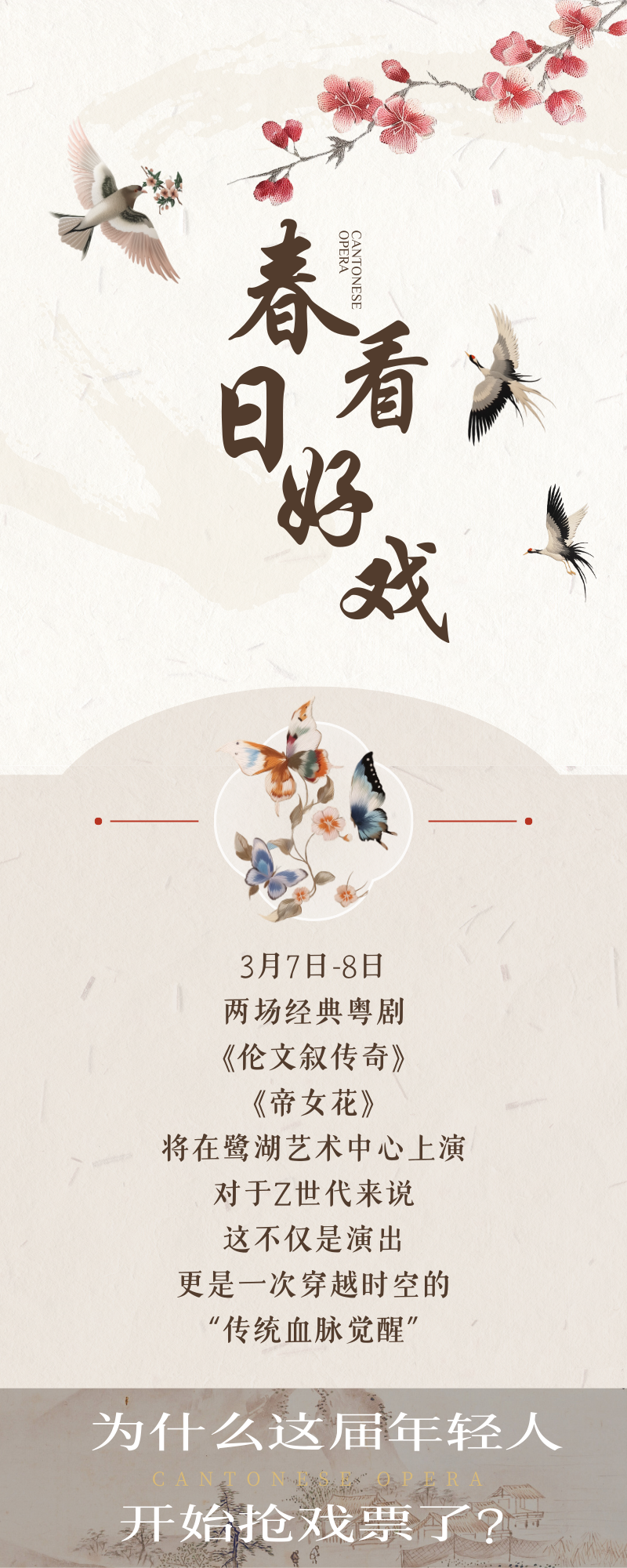 3月7日-8日,两场经典粤剧《伦文叙传奇》《帝女花》将在鹭湖艺术中心陆续登场,这不仅是一场演出,更是一次穿越时空的“传统血脉觉醒”。让我们一起相约鹭湖艺术中心,不见不散!