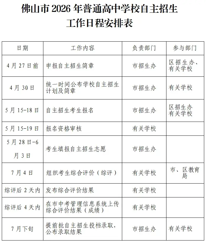 日前,佛山市教育局发布关于做好2026年普通高中自主招生工作的通知。今年全市符合自主招生资格的普通高中学校共21所,各校招生计划是多少?自主招生流程是怎样的?一起来看!