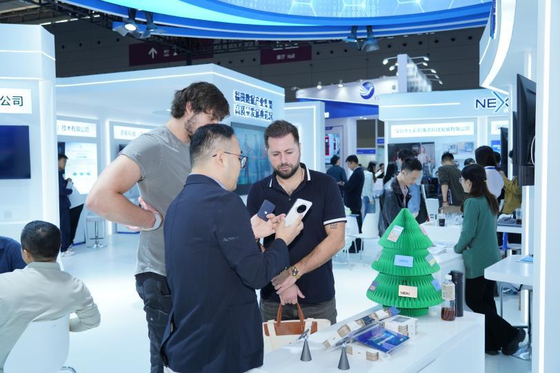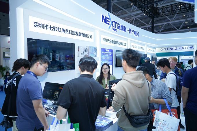 位于12号馆B30展位的“福田园区企业协同展示区”,成为开幕首日最具热度的“打卡点”之一。观众络绎不绝、体验氛围热烈、企业交流不断——这里不仅是科技产品的展示舞台,更像是一座真实运行的“微型创新生态系统”,将技术、场景、数据与企业实时联动在同一空间里。