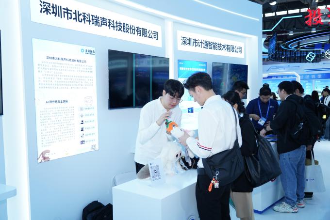 北科瑞声的AI情感陪伴玩具,凭借自研“潜岳”轻量化语音大模型,轻松实现“声音复刻、情绪感知与肢体联动”的多维交互,引得观众纷纷上前“解锁新体验”,现场互动感拉满。