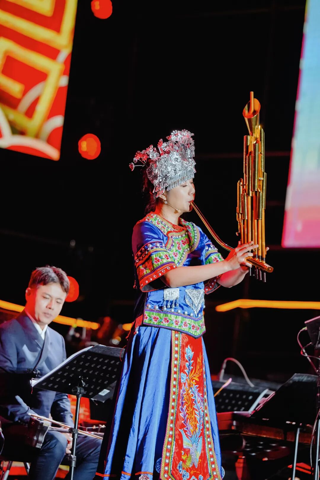 当晚,《龙腾虎跃》《瑶族舞曲》开篇即点燃气氛,双琵琶与打击乐《楚汉之战》演绎千年豪情,《中阮摇滚》突破传统乐器表达边界,笛子《牧民新歌》、芦笙《火车进侗乡》展现地域风情,二胡与大提琴版《菊花台》及唢呐独奏《百鸟朝凤》更将演出推向高潮,压轴曲目《敦煌》的丝路旋律、返场曲目《花好月圆》的流畅欢快,让现场观众沉浸式感受中国传统音乐的无限生命力。