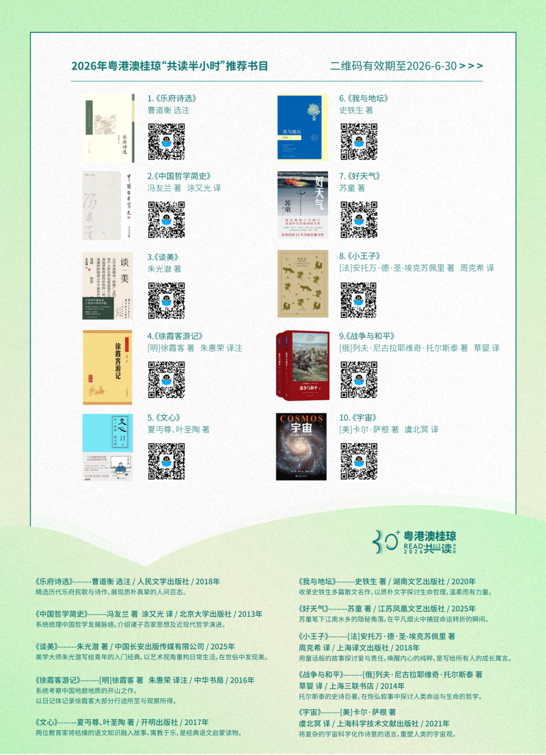 4月23日“世界读书日”当天,福田区图书馆将参与2026年粤港澳桂琼“共读半小时”活动,与深圳、广州、香港、澳门、南宁、海口等主会场一起品味书香。
