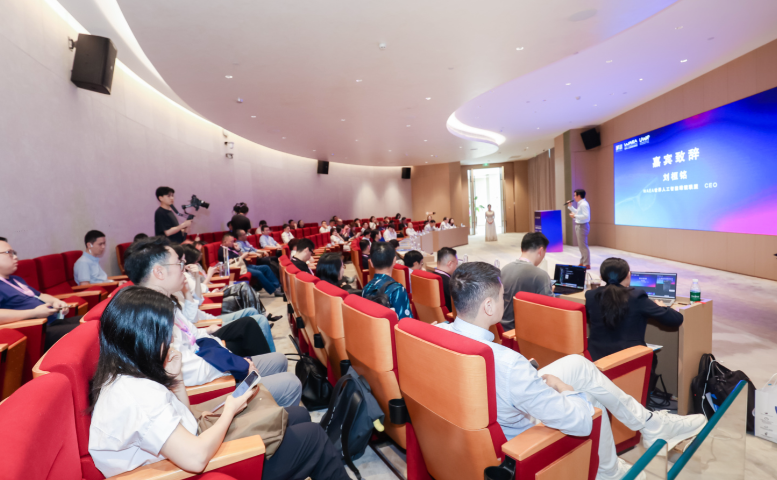 在主题演讲环节,国际标准领域专家以《精彩无界,智达全球——AI眼镜标准的国际化协同之路》为题作主旨分享。多位学术与产业领袖、企业代表围绕智能穿戴技术、芯片等底层技术突破展开深入分享。