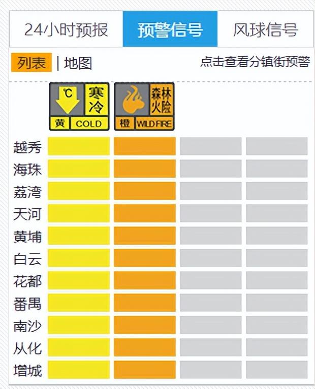 广州各区也均已发布寒冷黄色预警信号