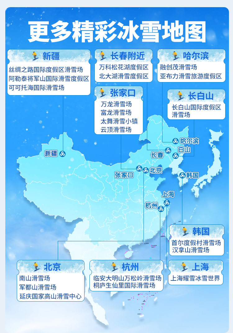 针对华南冰雪爱好者的三大热门目的地,春秋航空依托广泛的国内航线网络,优化整合出清晰的深圳出发中转方案: