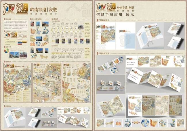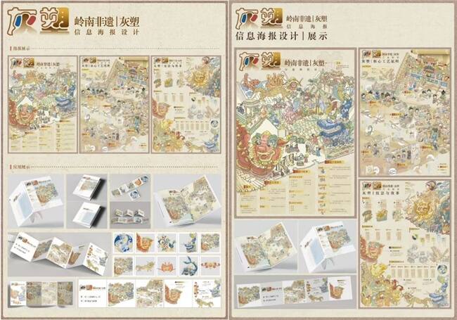 他们把灰塑复杂的六道核心工艺——备料、批底、塑形、上彩……拆解成一幅幅清晰的信息画卷。把鳌鱼、独角狮、博古纹——那些屋顶上的精灵,转译为海报、手册、动画。如今,灰塑是可以捧在手里的岭南记忆。
