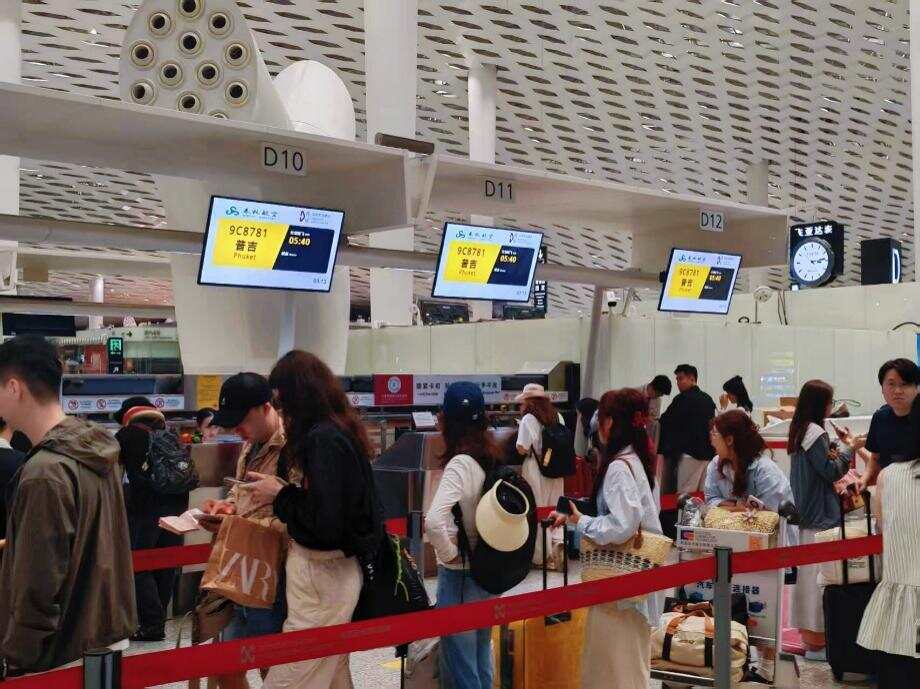 据悉,此前深圳飞往普吉的航班多需经停曼谷,全程耗时近15小时。新航线开通后,直飞航程仅约3小时40分钟左右。该航线每周执飞4班,具体班期为周一、三、五、日,往返每周计划提供座位量达1480个。首航航班当天满座起飞,显示出市场对该直飞航线的需求。