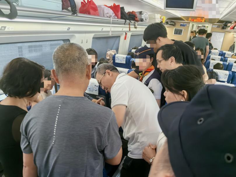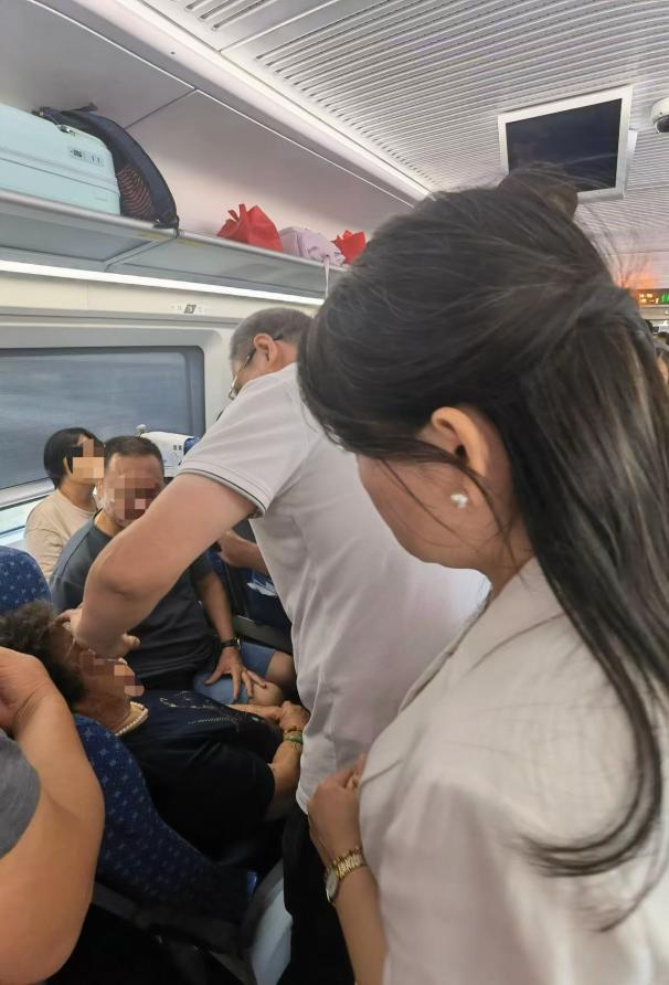 2025年10月19日下午5点,由潮州开往深圳的D683次高铁正高速平稳运行,车厢内旅客正处于一片祥和之中。突然,一声紧急呼叫打破了车厢的宁静:“3号车厢有乘客突发意外受伤!一位80岁以上高龄的老人不慎被保温杯砸中头面部,身体感到不适,恳请车内医务人员前往救援!”