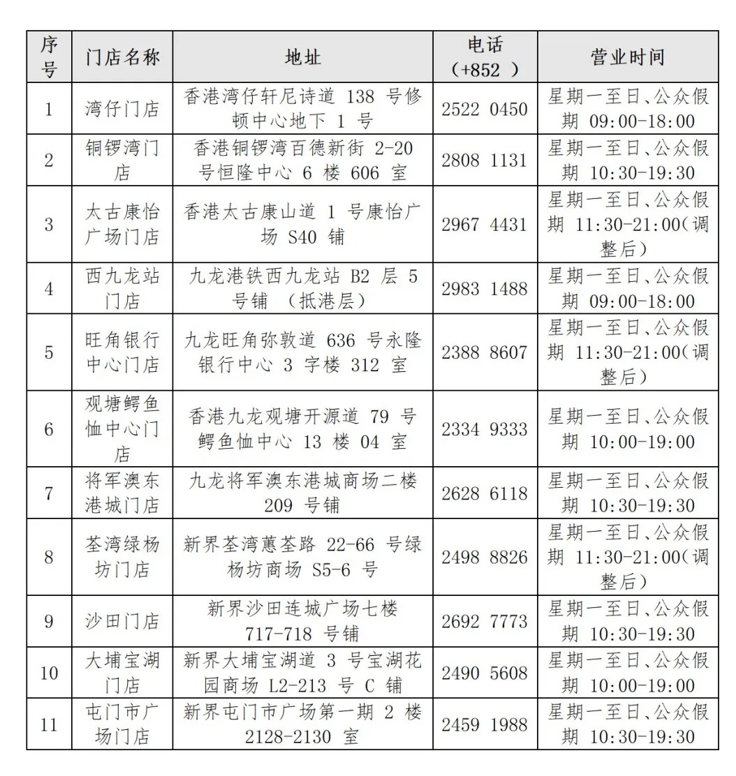 香港中国旅行社11家网点信息(仅销售香港赛区门票)