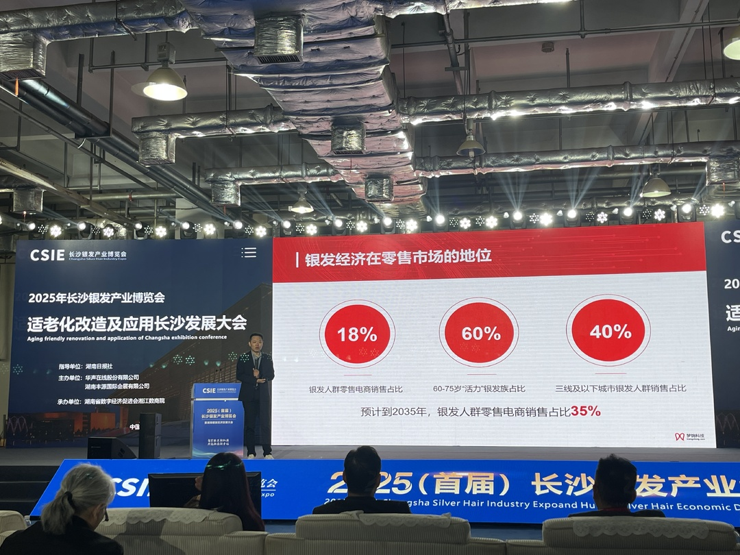 在近日举行的2025首届长沙银发产业博览会上,梦饷科技高级副总裁钱东清以“私域生态赋能银发经济,构建老年友好消费新场景”为主题发表主旨演讲,深入剖析银发经济带来的巨大市场机遇,并以梦饷科技的创新实践为例,阐述了私域电商助力银发经济的创新探索。