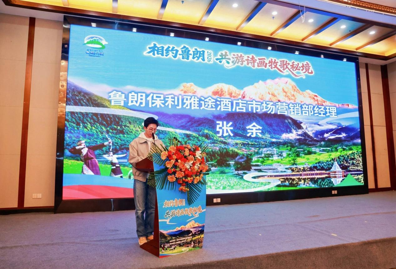 本次活动以“1场推介宣传+1场签约仪式” 为核心架构,旨在深度挖掘并全景展示鲁朗森林秘境的独特文旅资源,通过资源互送强化旅行社与景区的区域协作,以文旅深度融合赋能资源型景区实现共同富裕。活动现场播放了鲁朗文旅宣传片,沉浸式呈现鲁朗隐匿于雪山林海间的静谧之美、优质生态与浓郁人文韵味。白玛拉吉详细介绍了鲁朗色季拉山、鲁朗林海等核心景点,并解读了旅游套票核心权益;鲁朗保利雅途酒店负责人代表当地企业,分享了酒店的高端尊享服务与民宿的沉浸式藏式体验,凸显鲁朗住宿业态的品质优势。