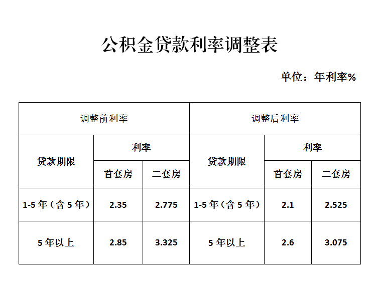 根据2025年5月7日发布的《中国人民银行关于下调个人住房公积金贷款利率的通知》,自2025年5月8日起,下调个人住房公积金贷款利率0.25个百分点,5年以下(含5年)和5年以上首套个人住房公积金贷款利率分别调整为2.1%和2.6%。5年以下(含5年)和5年以上第二套个人住房公积金贷款利率分别调整为2.525%和3.075%。