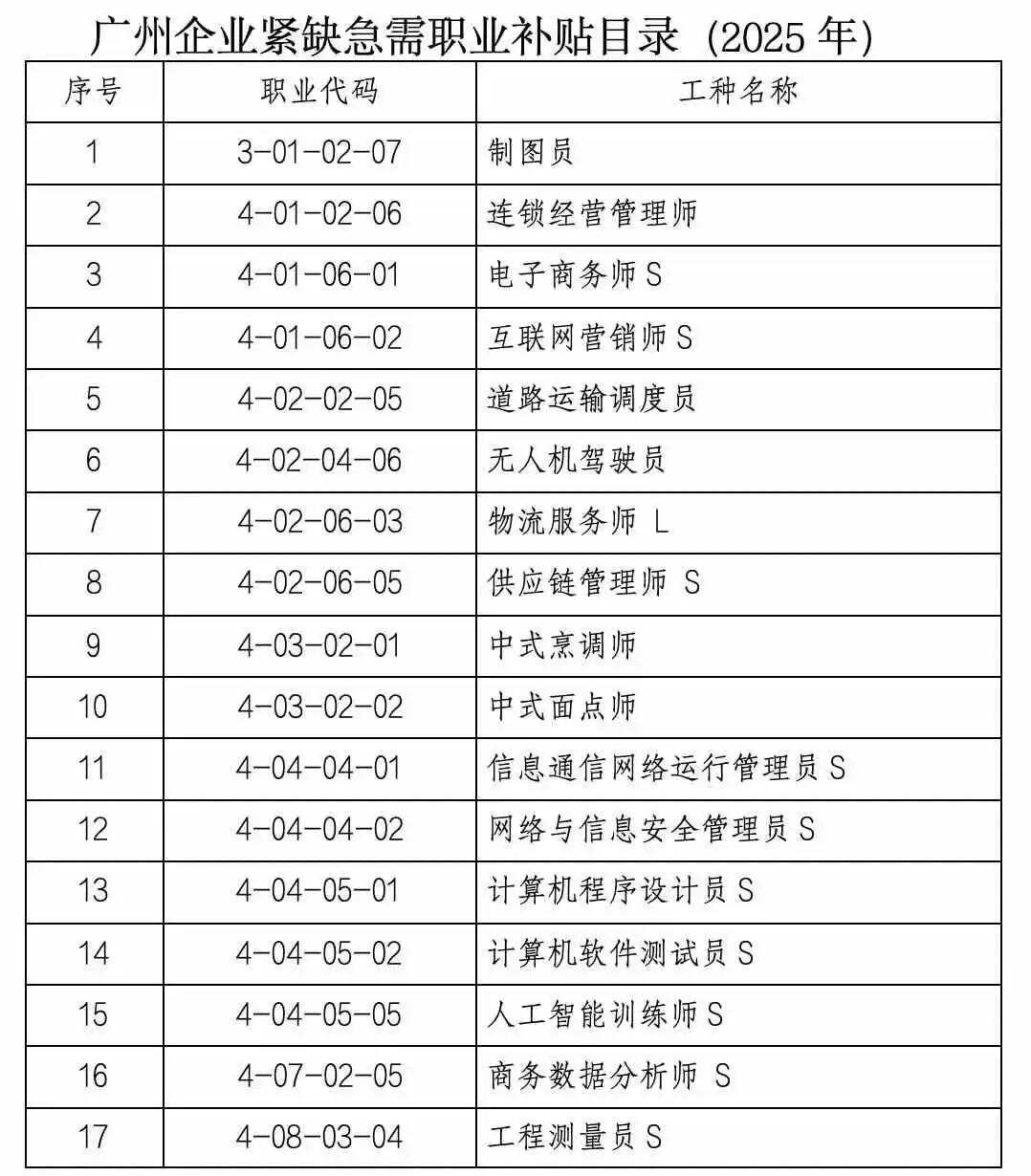 为强力支撑“制造业立市”战略,服务广州“12218”现代化产业体系建设,近日,广州市人力资源和社会保障局发布《广州市企业紧缺急需职业补贴目录(2025年)》。《目录》围绕广州21条重点产业链,聚焦智能化、数字化、绿色化发展方向,收录了工业机器人系统操作员、人工智能训练师、健康照护师等84个紧缺急需职业,为全市技能人才培养、引进和提升提供了精准的“导航图”。