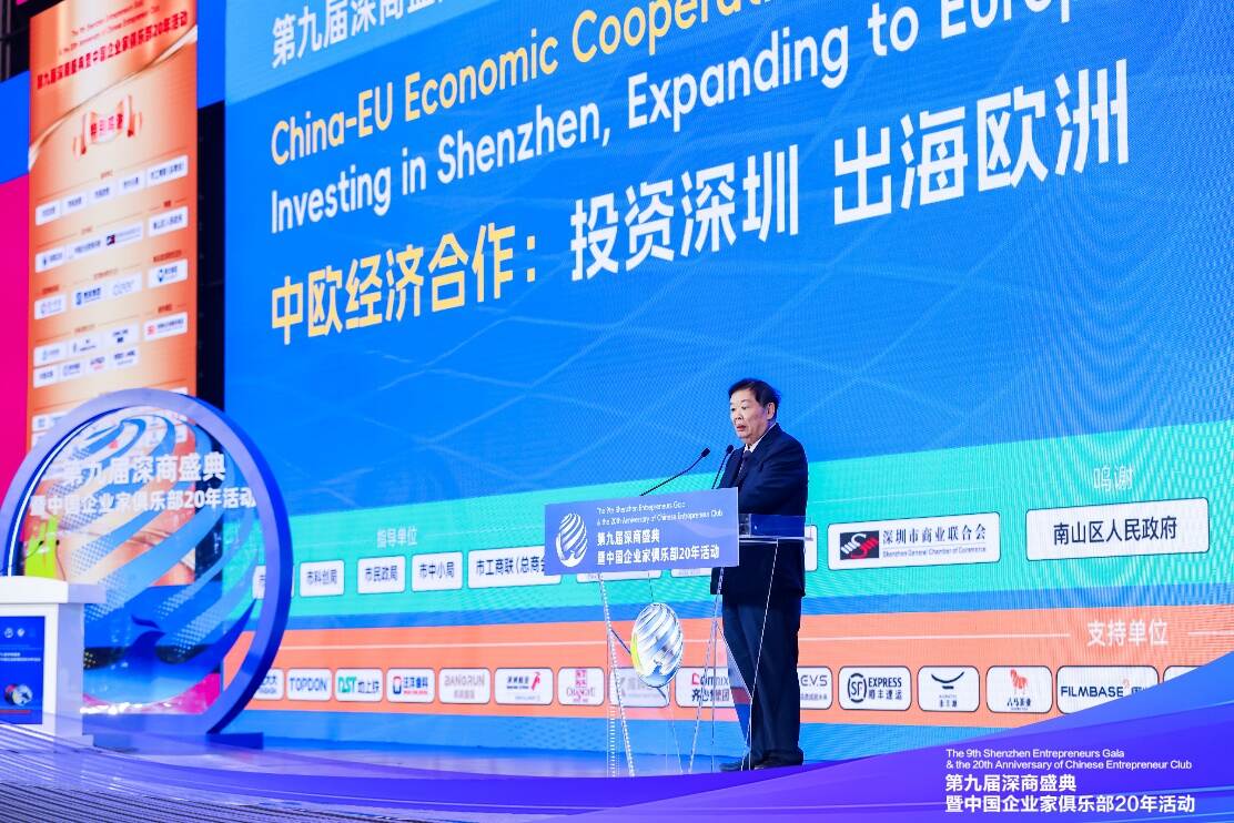 1月11日,深圳前海国际会议中心迎来一场汇聚中欧智慧的盛会。第九届深商盛典暨中国企业家俱乐部20年系列活动之“中欧经济合作论坛”在此举行,聚焦“投资深圳,出海欧洲”主题,围绕新能源、金融科技、生命健康、文旅、数字经济等战略新兴产业,探讨双向投资与合作路径。深圳市委原副书记、深商总会创会会长庄礼祥,福耀玻璃创始人、终身荣誉董事长曹德旺,欧洲部长委员会前主席、瑞典前就业部长斯文·奥托·利托林,深商会瑞士服务中心名誉主席、Sarasin Bank前CEO埃里克·萨拉辛,雄帝科技董事长郑嵩等中欧政企学界代表出席,《艾问iAsk》创始人艾诚主持论坛。