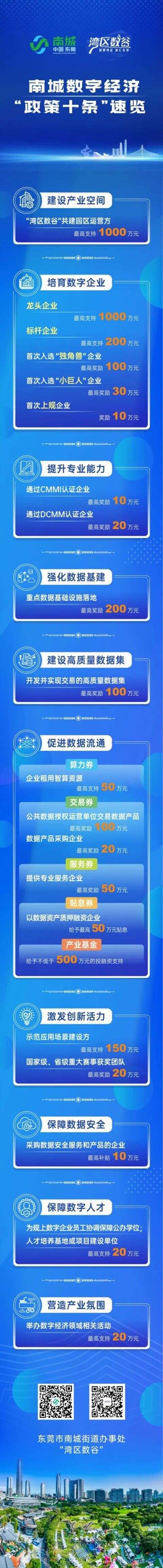 鼓励园区、楼宇为数字企业集聚发展提供低成本空间和高质量服务,对经认定的“湾区数谷”共建园区运营方,依园区实际投入,给予最高1000万元的支持。