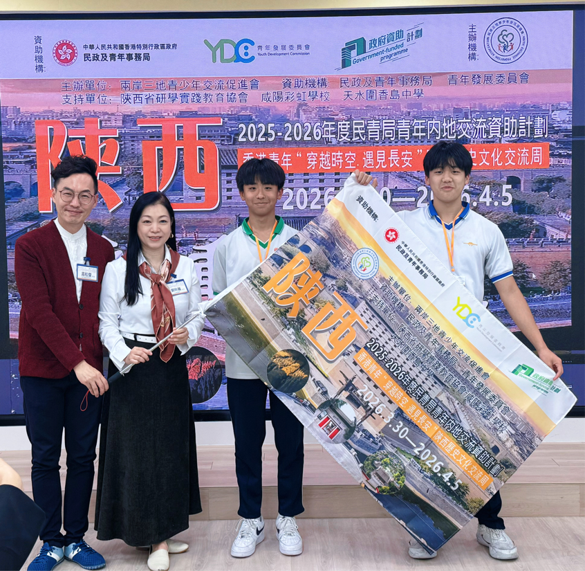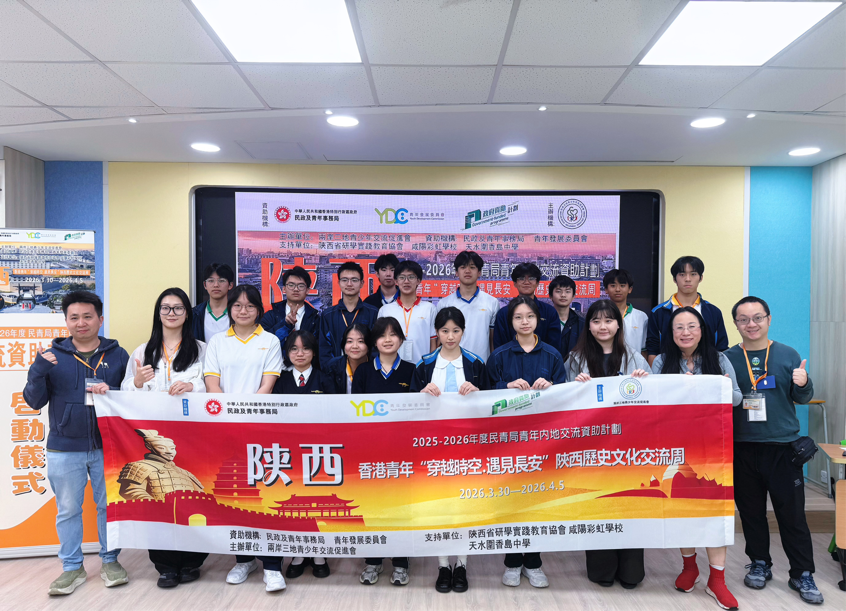 3月20日下午,由两岸三地青少年交流促进会主办,香港民政及青年事务局、青年发展委员会合办及资助的2025-26 年度「香港民青局青年内地交流资助计划」之“穿越时空·遇见长安”陕西历史文化交流周启动仪式,在香港天水围香岛中学举行。香港青年发展委员会委员高松杰、香港立法会前议员郭玲丽、油尖旺区议员李家轩、香岛中学特殊学习统筹主任李卓立及刘凯怡老师等嘉宾出席,与陕西交流团全体团员共同为此次文化探索之旅拉开序幕。