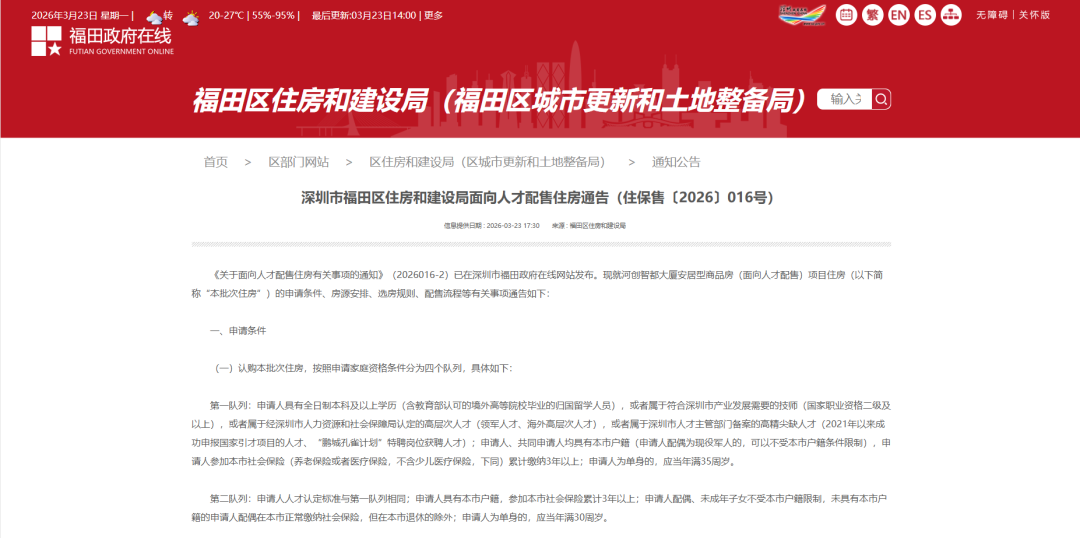 近日,深圳市福田区住房和建设局发布通告,面向符合条件的人才配售河创智都大厦安居型商品房,共计推出625套优质房源。