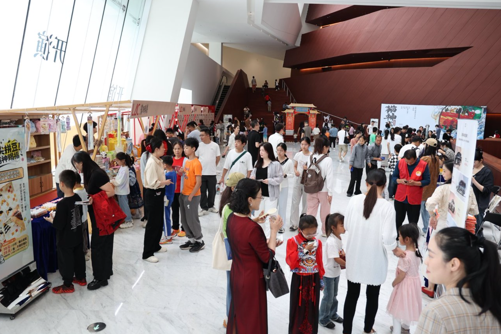 ⾸演当天,鹭湖艺术中⼼还围绕《猫神在故宫》同步推出多项主题互动活动,进⼀步增强观众的沉浸 式观演体验。剧院⼤厅设置“猫神选美⼤赛”互动投票区,吸引众多亲⼦家庭参与;“萌猫妆造 间”也受到⼤⼩朋友欢迎,不少观众在观演前便化⾝“萌猫”打卡拍照。与此同时,剧院前厅还惊喜 上演“猫猫跳舞快闪”,以轻松活泼的⽅式拉近演出与观众之间的距离。更具温度的是,现场同步开 展的流浪猫领养活动吸引不少家庭驻⾜咨询,与志愿者交流领养理念和流程。通过将剧⽬中 的“猫”元素与现实中的流浪动物公益⾏动相连接,鹭湖艺术中⼼尝试让《猫神在故宫》从⼀场舞台 演出延展为⼀次关于陪伴、守护与城市温度的公共⽂化实践。