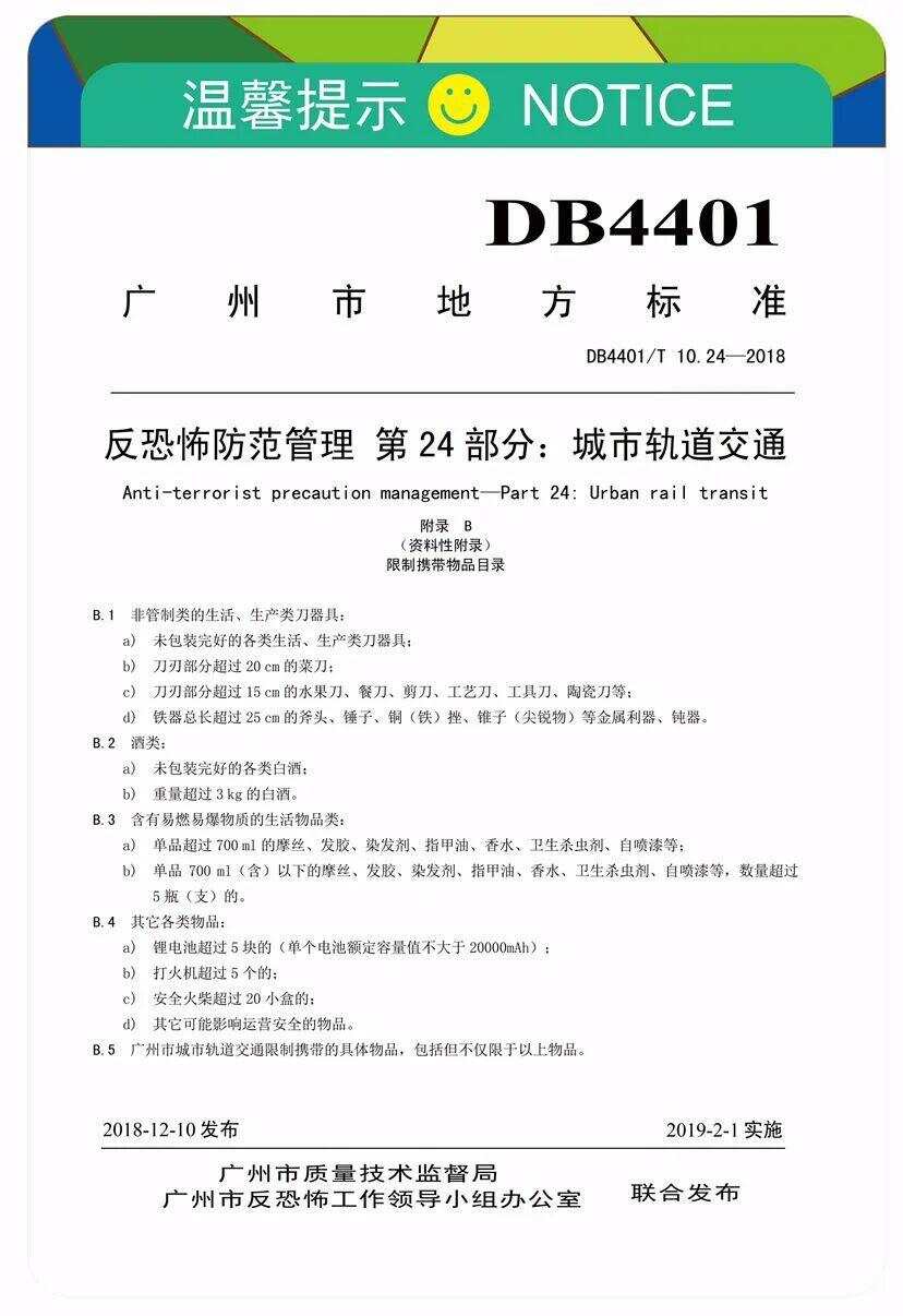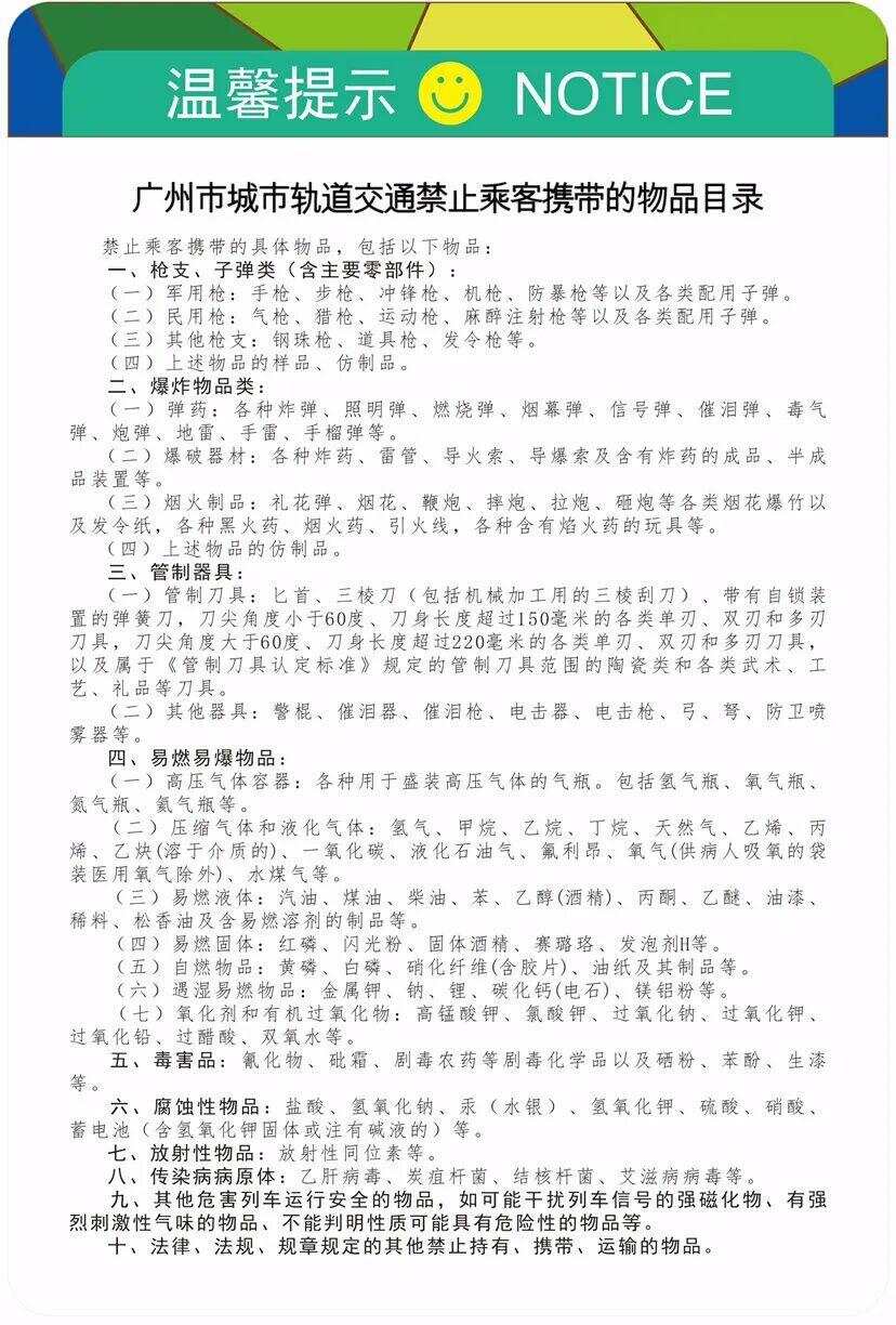 广州市城市轨道交通禁止乘客携带的物品目录。