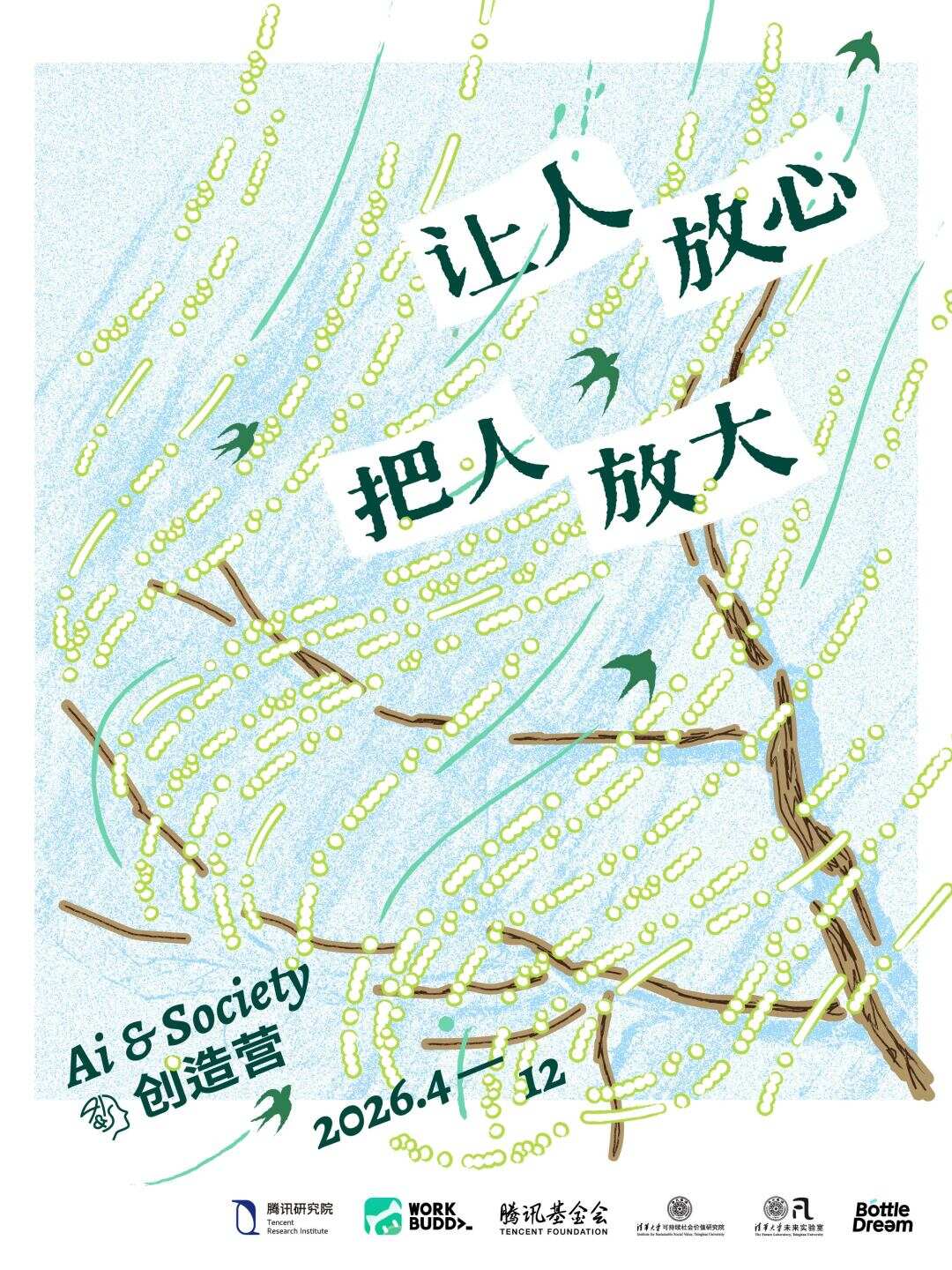 2026年4月21日,腾讯研究院、WorkBuddy、腾讯基金会、清华大学可持续社会价值研究院、BottleDream联合宣布,“AI & Society 创造营 2026”(以下简称“创造营”)正式启动。作为“让人放心、把人放大”理念的首个大规模社会行动载体,创造营面向全球开发者、设计师、研究者和社会创新实践者,征集AI技术驱动的社会问题解决方案与学术研究论文。